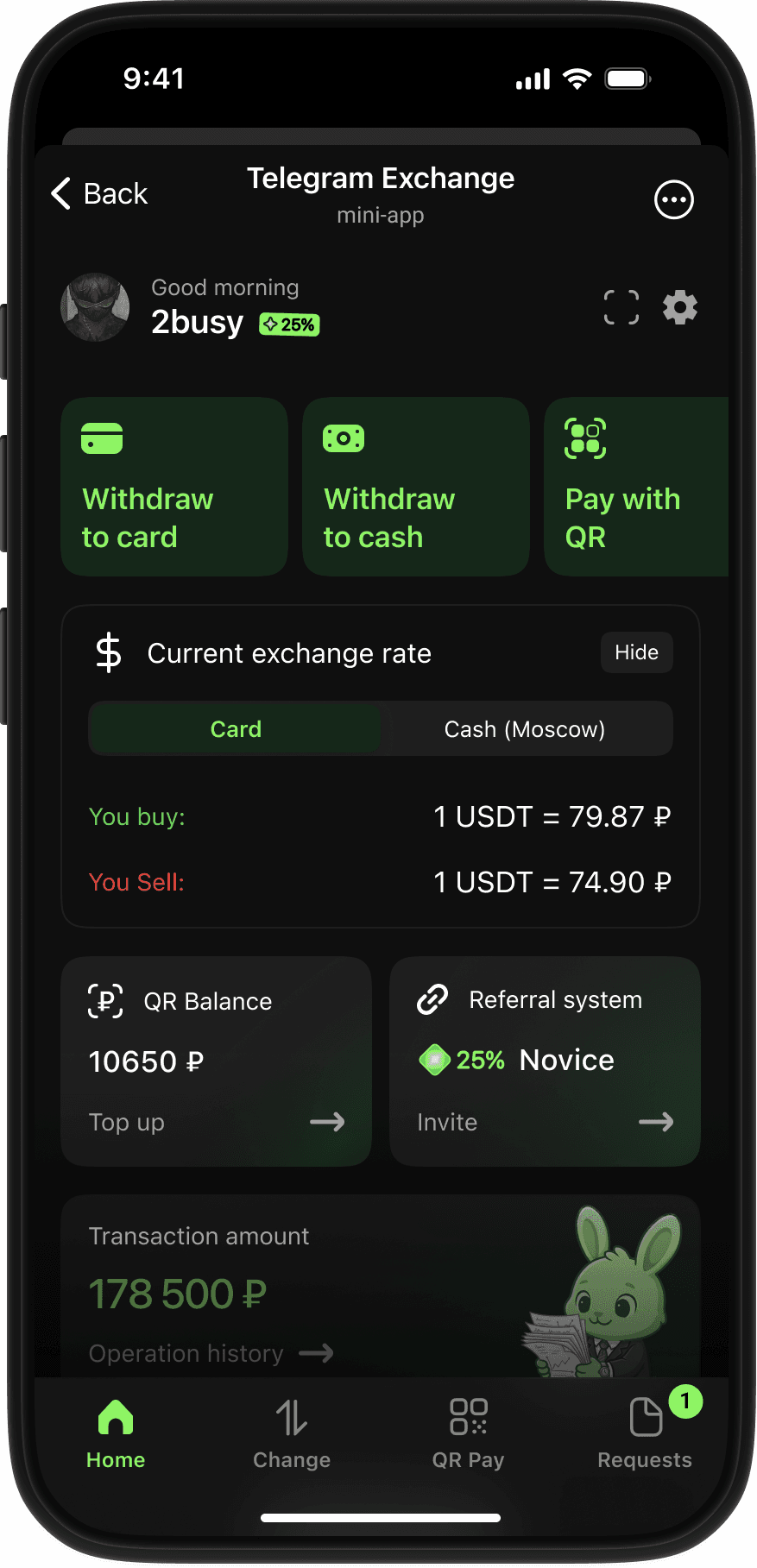 Designed a Telegram-based crypto exchange product focused on making fiat conversion simple and intuitive.