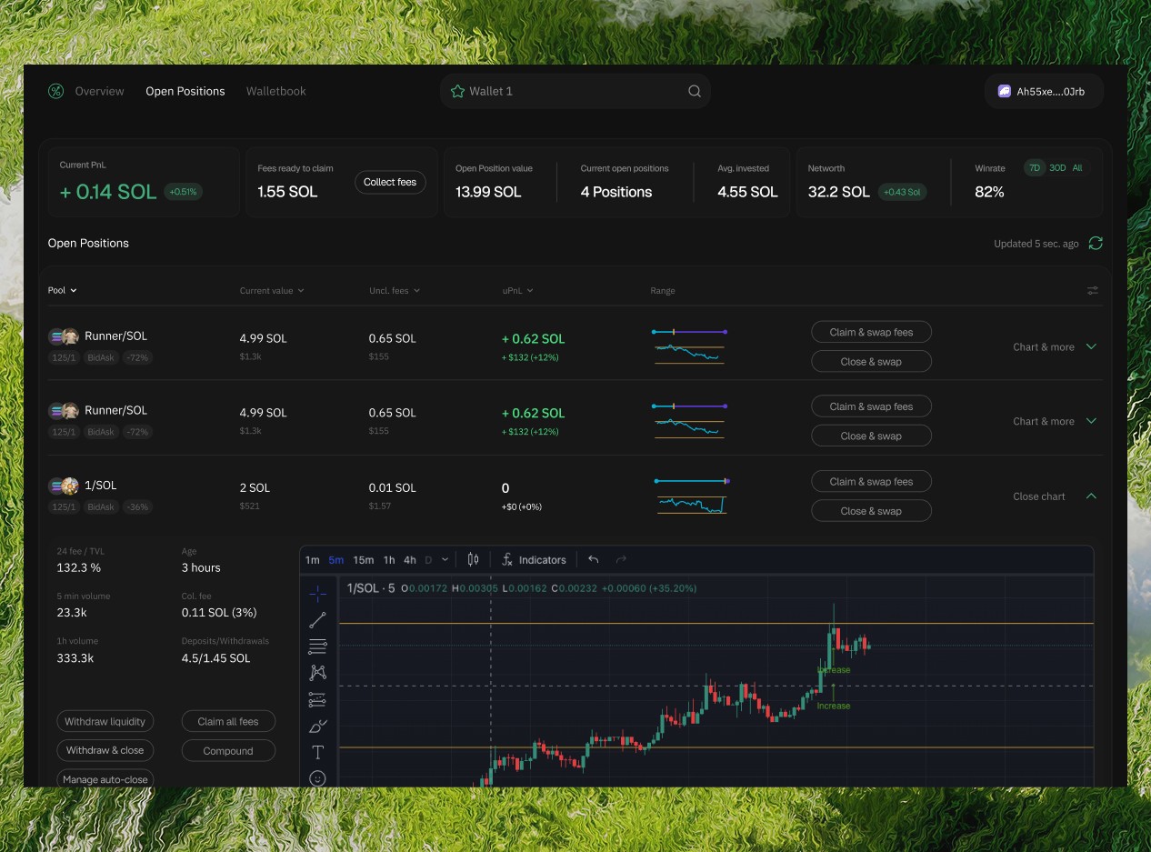 LP Agent dashboard for Meteora DLMM